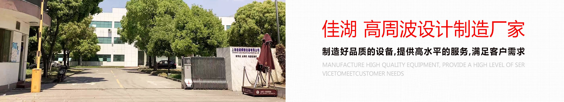 上海佳湖焊接設備有限公司(原上海佳湖機械設備有限公司)創業于2002年,是一家集生產、銷售、服務為一體的高周波設備制造企業。主要產品有高周波、全自動高周波機、高頻機、自動吸塑包裝機、吸塑封口機、醫療用品熱合機、高頻熱合機、超音波、超聲波等設備及模具的廠家。通過19余年的發展 , 在塑膠焊接行業和焊接工藝解決方案,可根據客戶需求定制各種非標自動化設備及夾具。