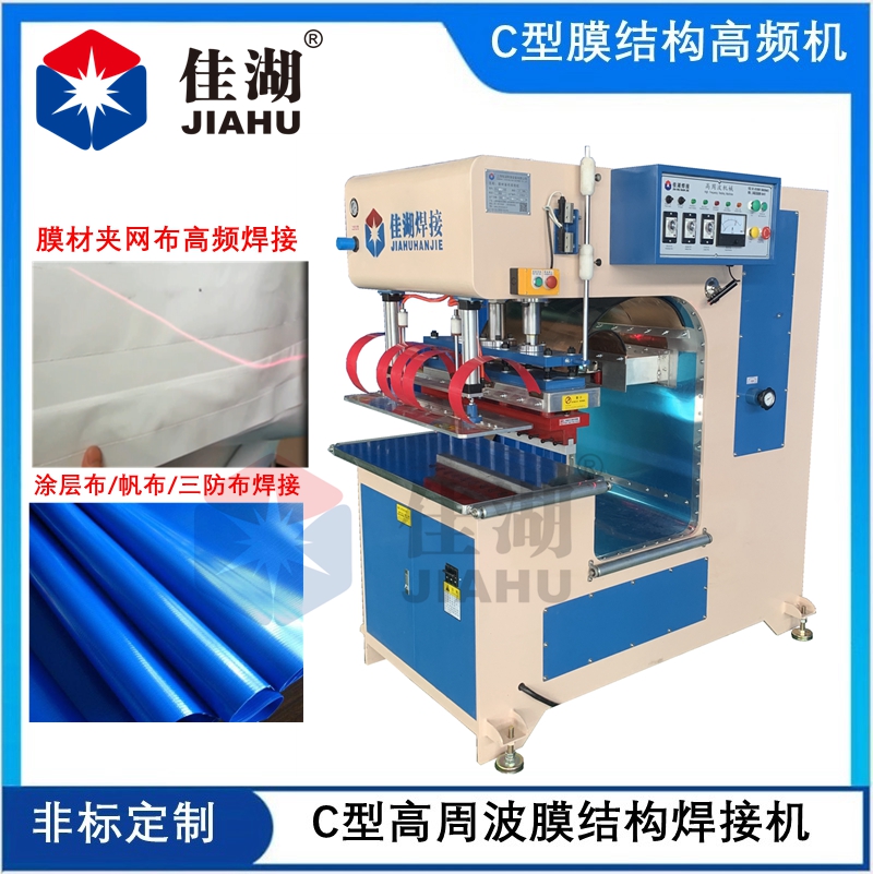 上海佳湖按客戶需求可定做各種非標膜結構高頻機、高周波膜結構焊接機,膜材熱合機、C型膜結構焊接機、帳篷蓬房熱合機、自動連續式噴繪布、拉漲膜焊接機等設備。